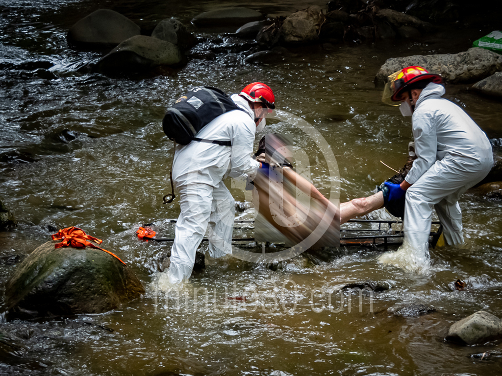 El procedimiento de rescate de la persona fallecida fue ejecutado por el Cuerpo de Bomberos de Envigado.