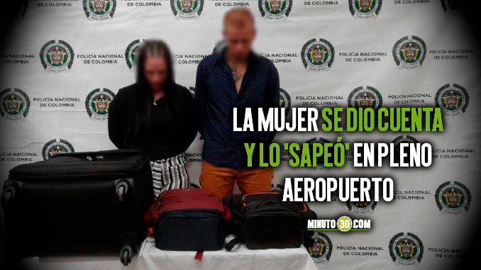 La Dirección de Antinarcóticos de la Policía Nacional informó que en las últimas horas logró la captura de una pareja dentro de las instalaciones del aeropuerto José María Córdova.