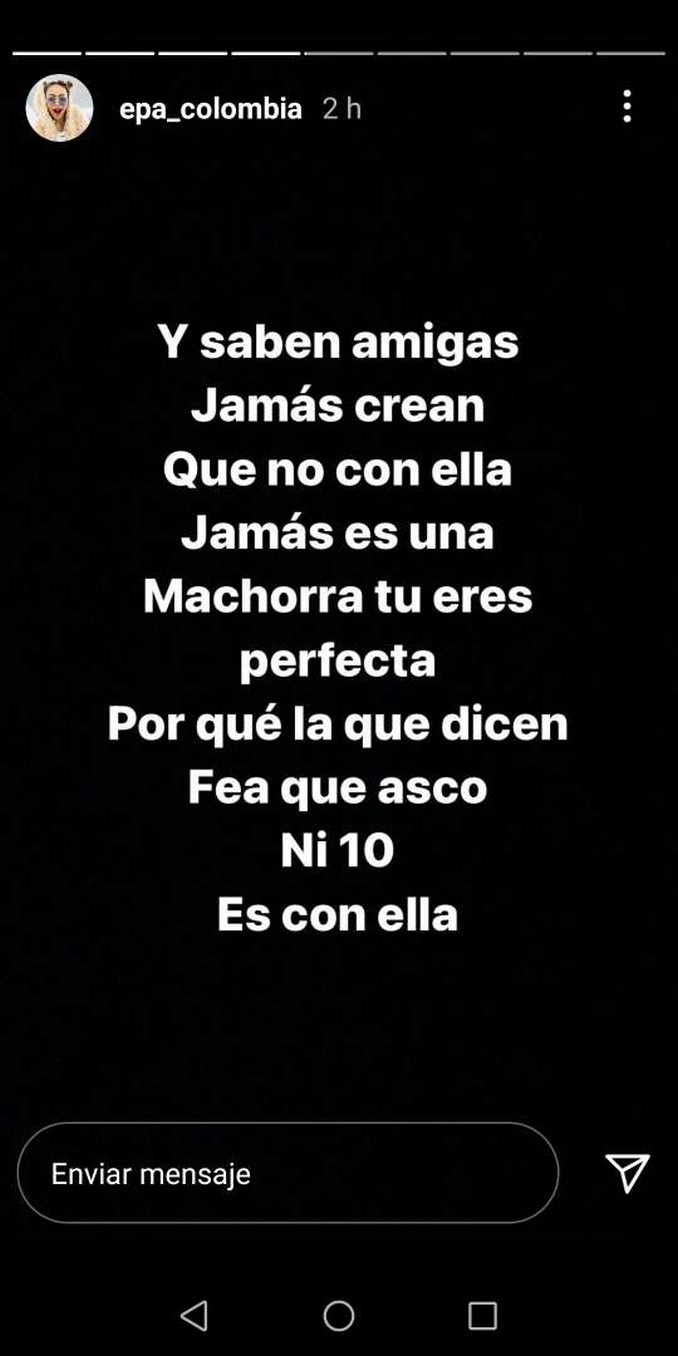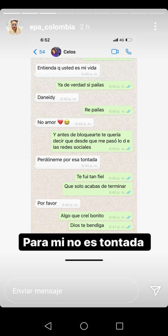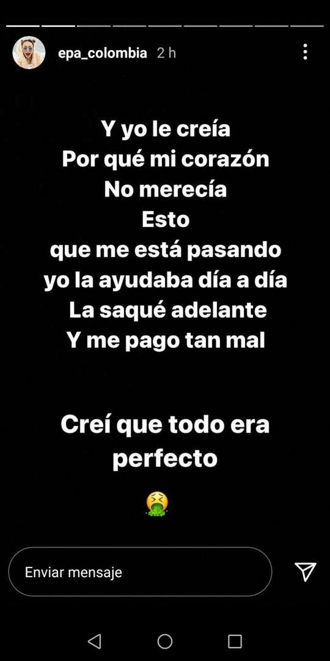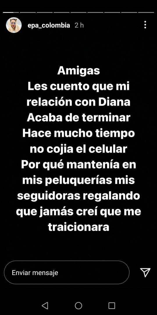 A través de sus estados de Instagram, ‘Epa Colombia’ contó que su relación con “Diana acaba de terminar. Jamás creía que me traicionara”.