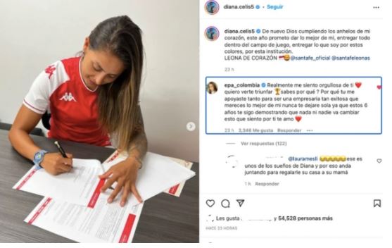 La misma Epa Colombia le dejó una romántica declaración en uno de los últimos posteos de Diana Celis, donde la deportista aparece firmando el contrato con el club Santa Fe, cosa que llenó de emoción a los fanáticos.