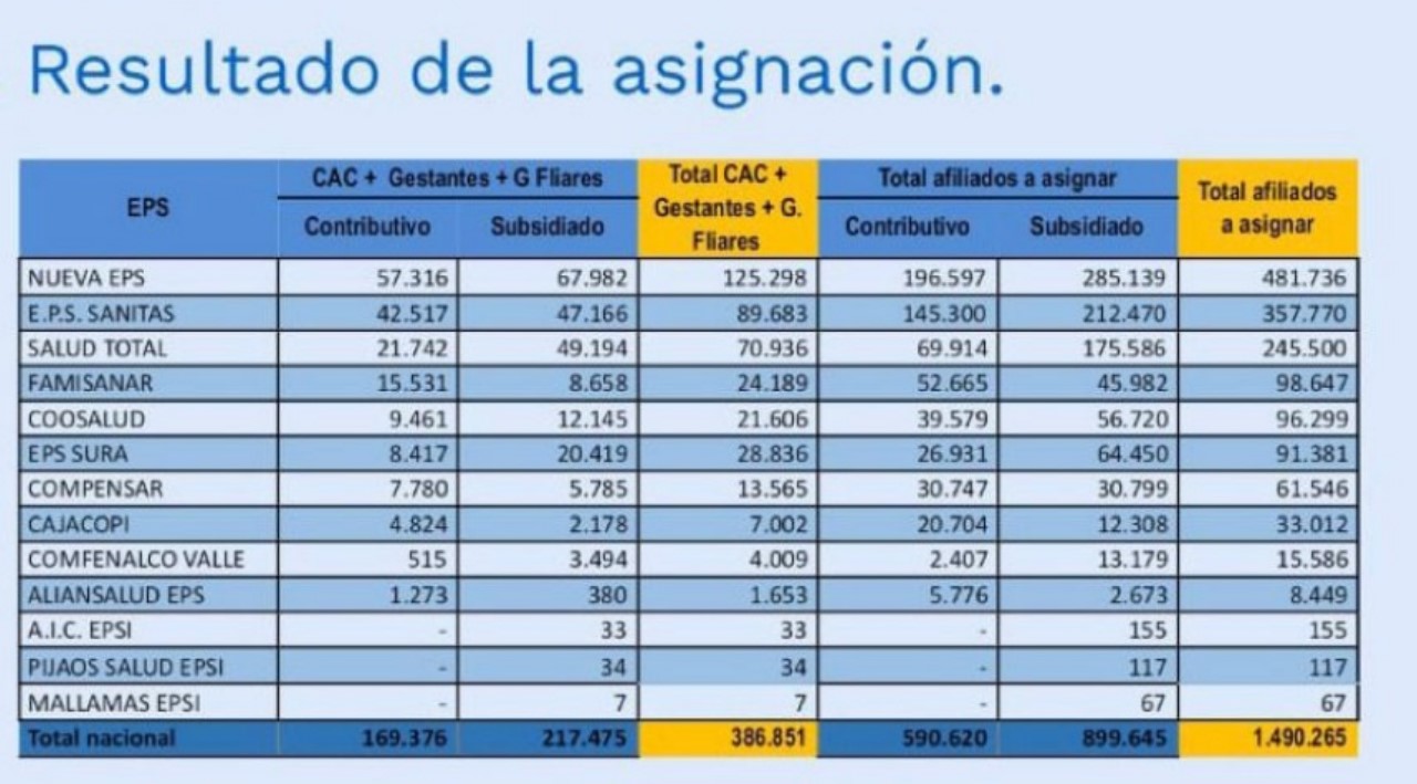 El Ministerio de Salud y Protección Social ha publicado las EPS que recibirán a los casi 1,5 millones afiliados de los regímenes contributivo y subsidiado de Medimás EPS en liquidación, a partir del 17 de marzo.