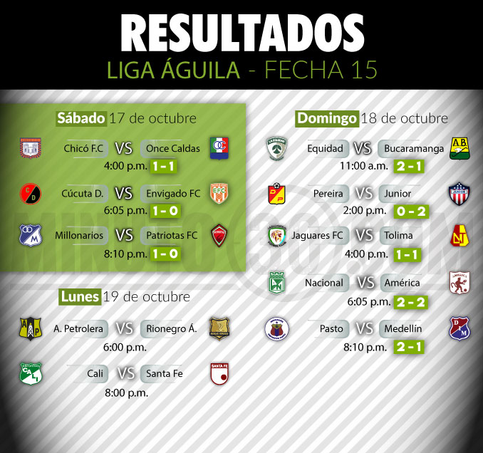 Envigado FC y el Deportivo Independiente Medellín fueron derrotados en sus visitas a Cúcuta Deportivo (1-0) y Deportivo Pasto (2-1), respectivamente.