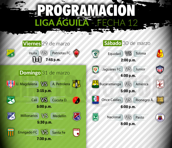 Con el empate entre Atlético Huila y Patriotas Boyacá (1-1), en el Estadio Guillermo Plazas Alcid, se abrió la fecha 12 de la Liga Águila I-2019.