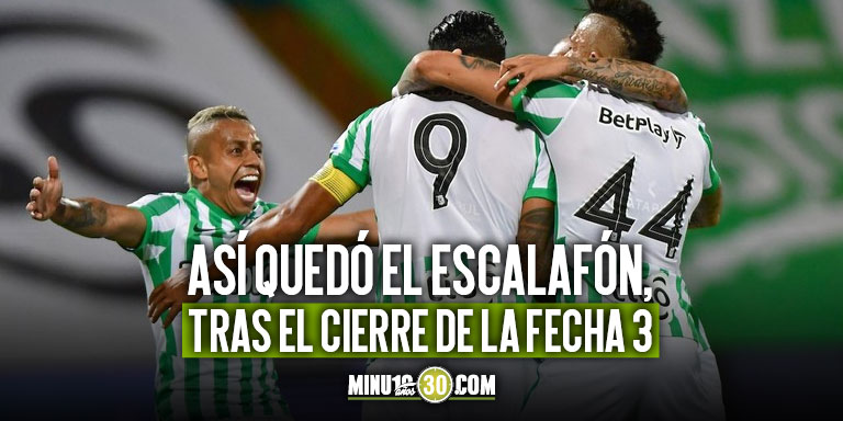 Por su parte, Atlético Nacional apare tercero y gracias a su diferencia de gol (+4), comanda el grupo de los que tienen seis puntos, entre los que están Millonarios, Jaguares de Córdoba y el Deportivo Independiente Medellín.