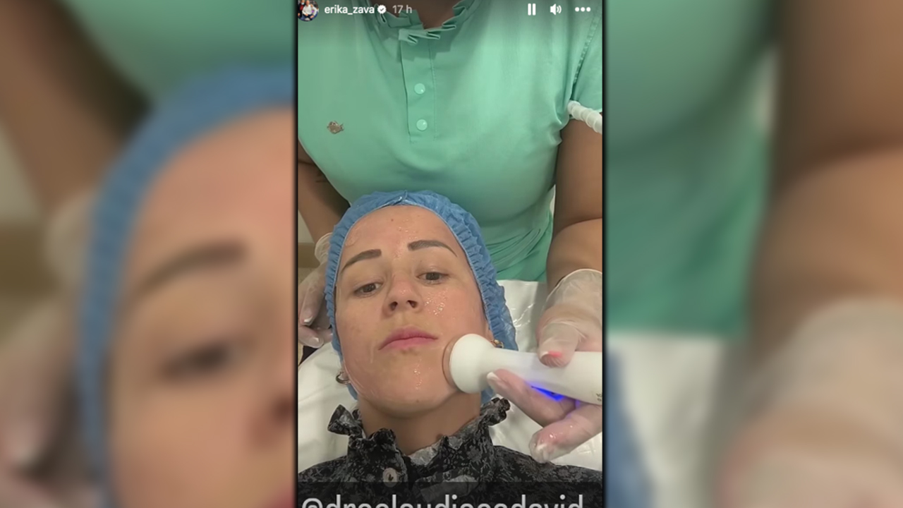 A través de sus historias, Erika Zapata compartió un video acostada en una camilla mientras una persona profesional estaba atendiendo su rostro y su piel: