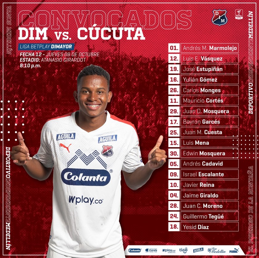 Minuto30.com- Muchas bajas tendrá el Deportivo Independiente Medellín para enfrentar este jueves a Cúcuta Deportivo, en cumplimiento de la fecha 12 de la Liga BetPlay I-2020.