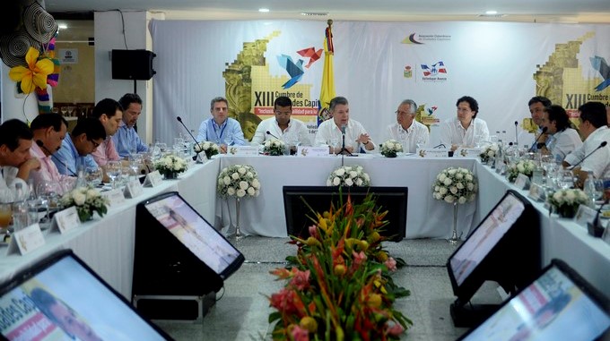 Durante la clausura de la XIII Cumbre de Alcaldes de Ciudades capitales en Valledupar, el presidente Juan Manuel Santos aseguró que el Gobierno espera que las FARC se desarmen a la mayor brevedad.
