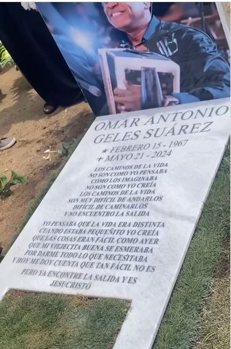En redes sociales se conoció un video de la viuda y esposa de Omar Geles q.e.p.d donde limpia su tumba. La lápida de marmol donde reposa el cantante en Valledupar, tiene escrita parte de su canción ‘Los caminos de la vida’ junto con un mensaje final que conmueve a los visitantes y a muchos de sus seguidores: “Ya encontré la salida y es Jesucristo“.