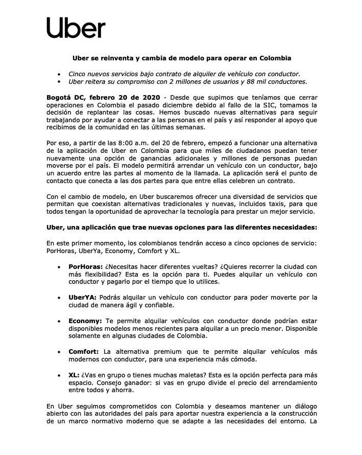 Así las cosas, Uber será ahora solo el intermediario entre un contrato de servicios entre quien quiera contratar el vehiculo con conductor y el propietario y conductor de este.