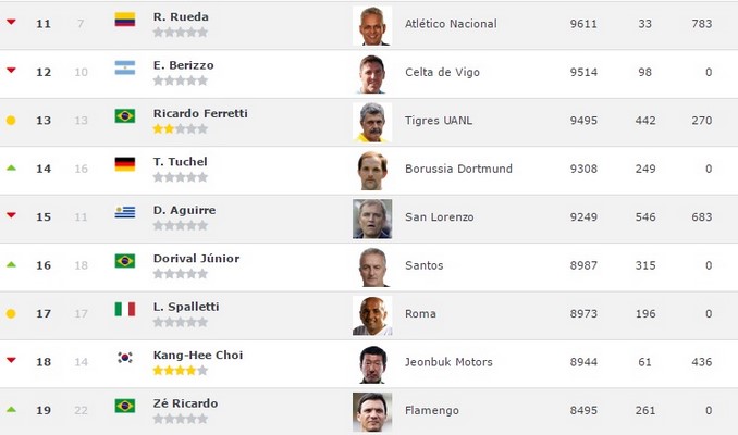 Por su parte, Reinaldo Rueda se posiciona en el undécimo lugar, en la clasificación de entrenadores. En el podio están Zidane, Luis Enrique y por supuesto, Diego Simeone.