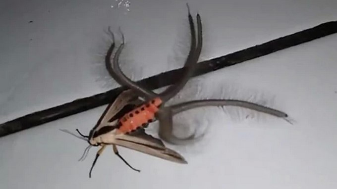 En las últimas horas se volvió viral la imagen de un insecto naranja con alas y algo parecido a unos tentáculos con pelos, dichas imágenes calificadas por los internautas como “terroríficas” fueron filmadas en Indonesia.