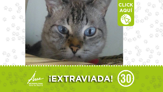 Esta gatica se perdió en el secto Florida Nueva. Si usted la ve, por favor, llamar al: 3217324743 – 3116293904 ¡Difunde y ayuda!