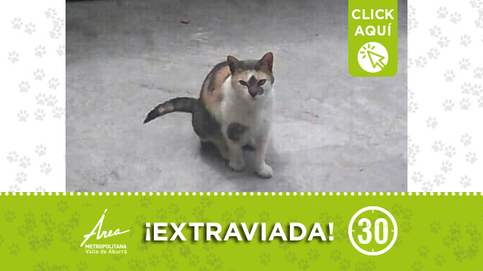 Esta gatica se perdió en Manrique, calle 80 con la carrera 45. Si tiene alguna información sobre el paradero de esta gatica, por favor comunicarse al número 3012011892. ¡Difunde y ayuda!