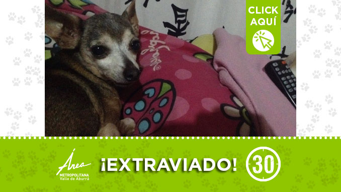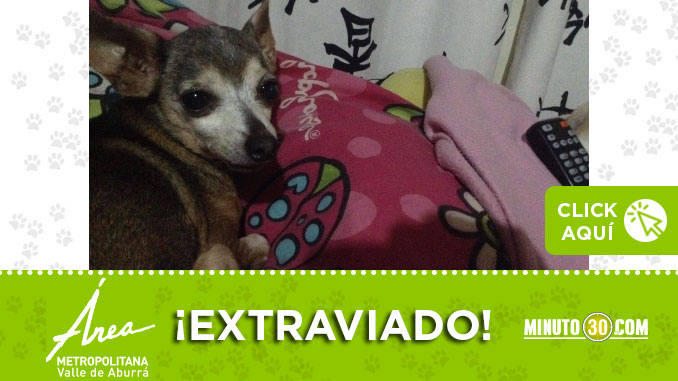 Esta mascota que porta una pañoleta de color rosa se extravió por la estación del Metro de San Javier en Medellín.