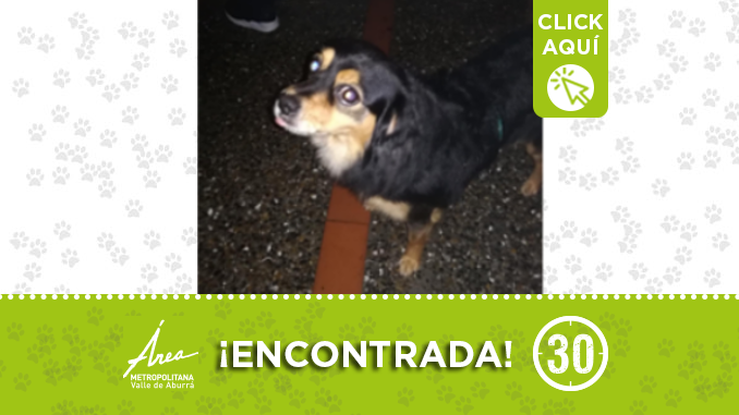 Esta perrita fue encontrado en el barrio Belén Altavista parte baja, tiene un collar de huellitas celeste.