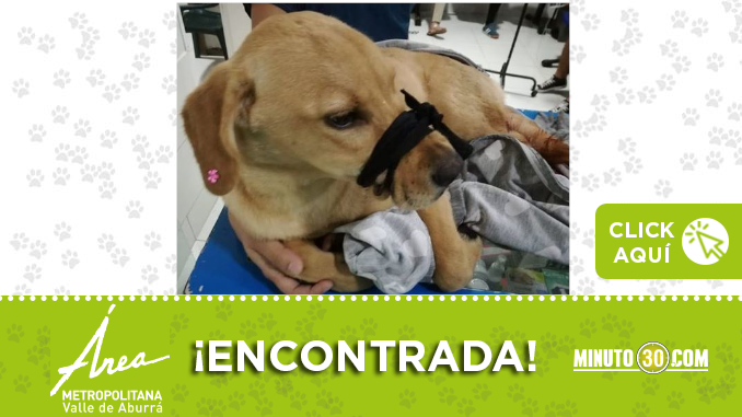 Esta perrita fue encontrada luego de que sufriera un accidente en el centro de Medellín. La persona que la rescató hizo que curaran a la mascota, pero quiere encontrar a sus dueños, y por eso dispuso del teléfono 3145252260. ¡Comparte!