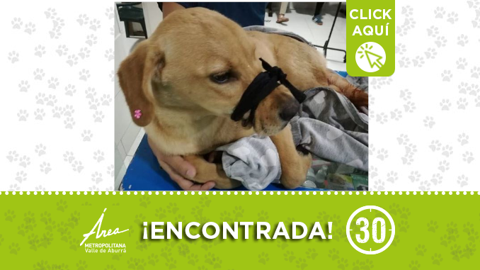 Esta perrita fue encontrada luego de que sufriera un accidente en el centro de Medellín. La persona que la rescató hizo que curaran a la mascota, pero quiere encontrar a sus dueños, y por eso dispuso del teléfono 3145252260. ¡Comparte!