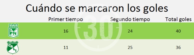 Minuto30.com .- Durante el primer semestre de 2017 Atlético Nacional y Deportivo Cali han sido contundentes en sus cifras de gol. Mientras que el equipo paisa ha convertido 40 tantos, el equipo azucarero ha logrado 36 goles.