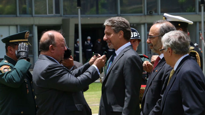 Embajador de Estados Unidos en Colombia, Kevin Whitaker, recibió condecoración del ministro de Defensa Luis Carlos Villegas, “por sus buenas labores en beneficio de Colombia”. Foto: @Mindefensa