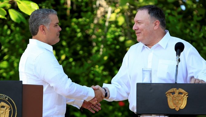 Pompeo se refirió al tema en una declaración conjunta a la prensa tras concluir una reunión con el presidente colombiano, Iván Duque, en esta ciudad caribeña.