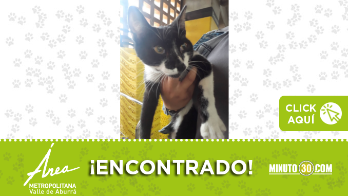 Este gatico fue encontrado en el Éxito de Robledo, tiene collar morado.