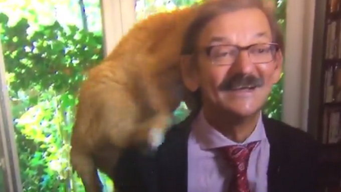 En entrevista a un reconocido historiador y politólogo polaco, transmitida en vivo por un canal holandés, un gato fue el que se robó el show y las cámaras.