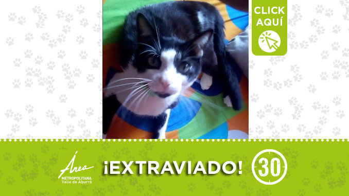 Este gatico se perdió desde el 7 de agosto en el barrio Juan XXII. Si usted lo ha visto por favor llamar a los números: 3194047008 – 3008396638. ¡Difunde!