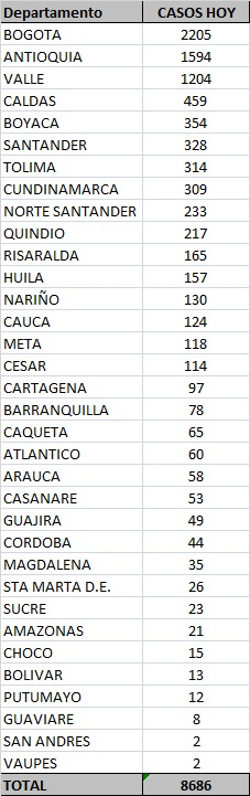 Este jueves Colombia continúa por encima de los 11.000 recuperados de covid, y así están repartidos los nuevos casos