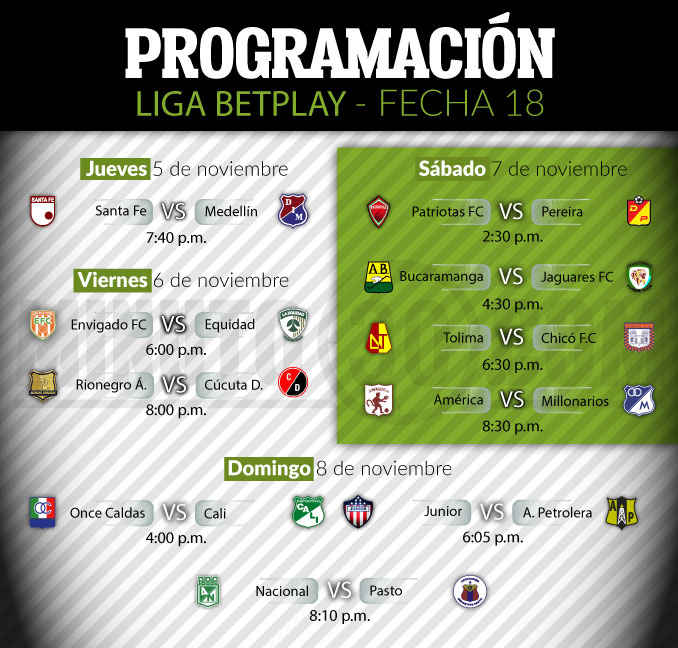 El clásico de la fecha se disputará el sábado en el Estadio Pascual Guerrero, donde América y Millonarios se medirán a partir de las 8:30 de la noche.