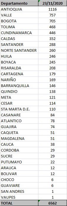 Estás son las cifras oficiales del covid-19 en Colombia, este 23 de noviembre: