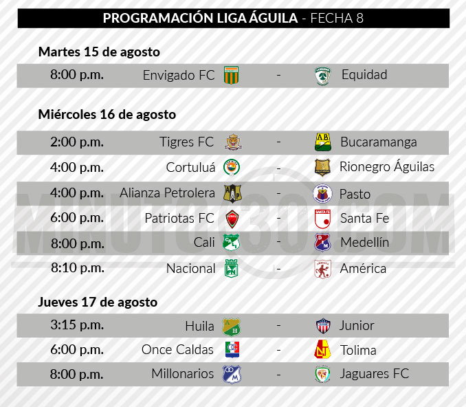 Con el partido entre Envigado y La Equidad, se abrirá este martes a las 8:00 de la noche la octava fecha de la Liga Águila II-2017.