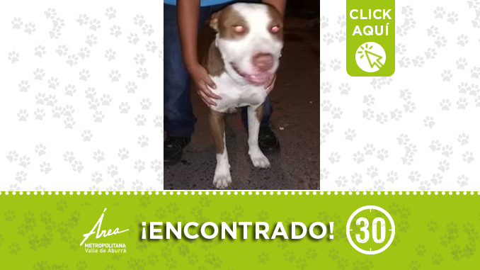 Este perrito llegó desorientado al barrio 12 de octubre y al parecer se encuentra perdido. El animalito es de color café con blanco y tiene un parche café en los dos ojos, además, su pecho es blanco. Si conoce a los dueños, puede comunicarse al 3234332052.