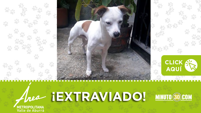 Este perrito de raza Jack terrier, color blanco con mancha café está perdido.