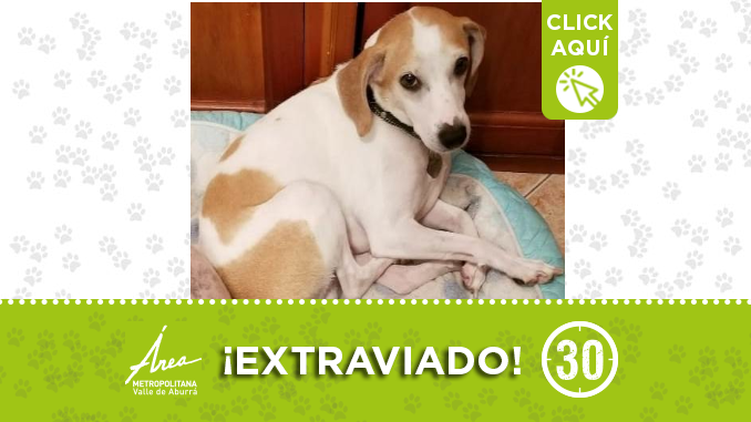 Este perrito se perdió cerca a la estación Las Esmeraldas del Metroplús en la mañana de este 13 de mayo