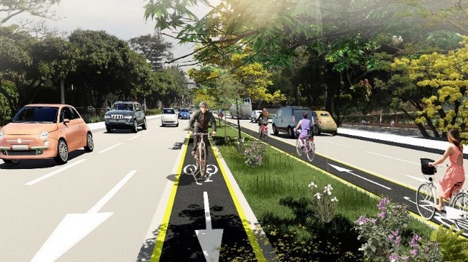 Así se verá la ciclorruta de la Avenida Las Vegas. Foto: Alcaldía de Medellín.