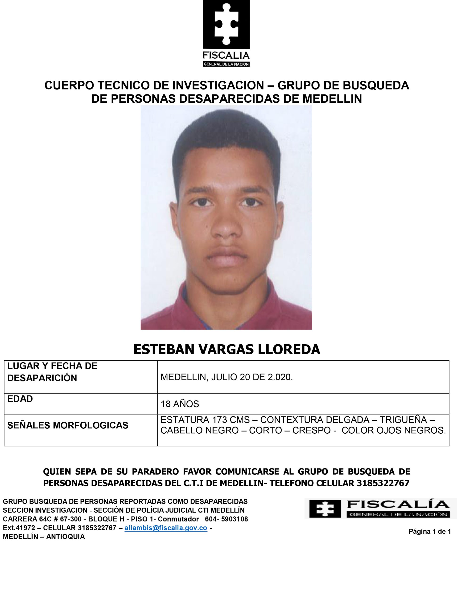 Resumen: Esteban Vargas Lloreda, de 18 años, desapareció el 20 de julio de 2020 en Medellín