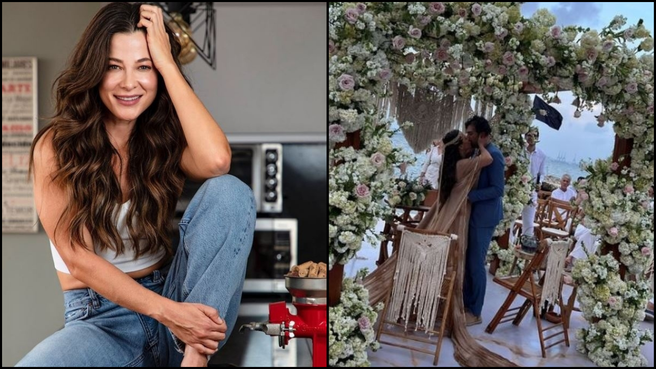 La actriz lució un vestido color beige muy de su estilo, mientras que su ahora esposo vistió un traje azul. El escenario se robó todas las miradas, pues además de ser a la orilla del mar, las flores en la decoración abundaron.