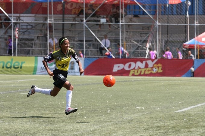 Estefanía acompaña en el cuadro de anotadoras a Anlly Tabares, de Atlético Nacional en el Quinto Festival de Ponyfútbol Femenino que se cumple en la cancha Marte Uno dentro del Cuarto Festival de Festivales de la Corporación Los Paisitas, Deporte con Sentido Social.