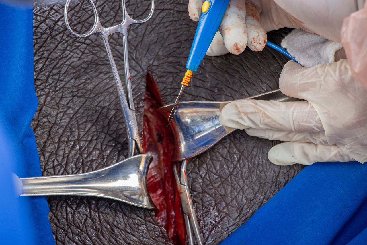 Para llevar a cabo todo el procedimiento tuvieron que desplazar hacia Doradal un quirófano completo compuesto por una máquina de anestesia para grandes especies, equipos de coagulación avanzada, un monitor de signos vitales, laparoscopia y un telepac.