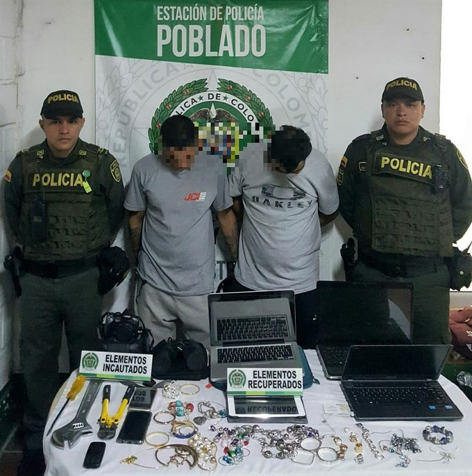 Esta pareja de ‘apartamenteros’ fue capturada cuando pretendían huir a bordo de un vehículo de la marca Ford tras vaciar una vivienda en el sector de El Diamante en el barrio El Poblado de Medellín.