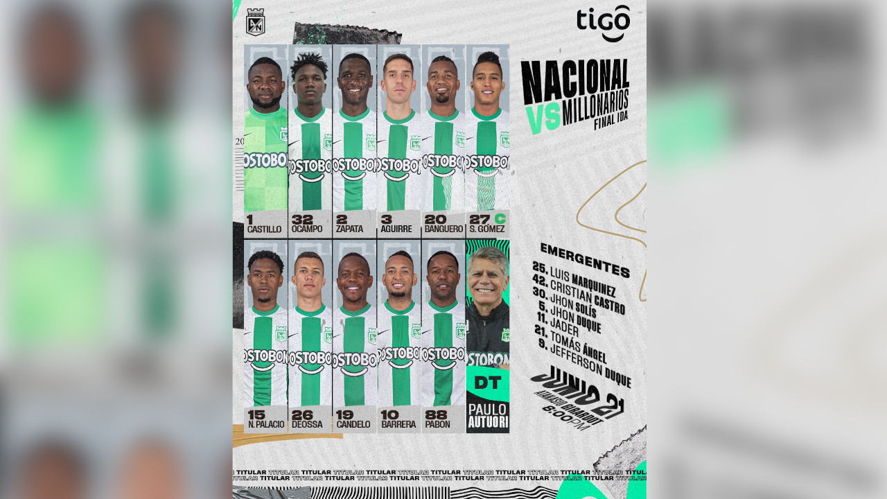 Los elegidos por Paulo Autuori para arrancar el compromiso son Harlen Castillo, Édier Ocampo, Cristian Zapata, Juan Felipe Aguirre, Danovis Banguero, Sebastián Gómez, Nelson Palacio, Nelson Deossa, Yerson Candelo, Jarlan Barrera y Dorlan Pabón.