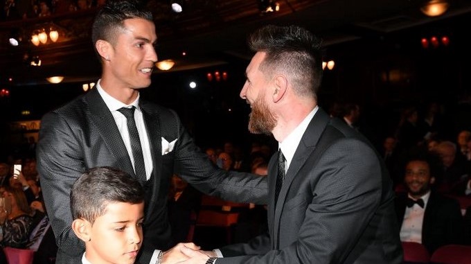Cristiano Ronaldo saluda a Lionel Messi. EFE/Archivo.