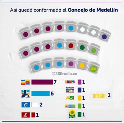 Con el 100% de las mesas informadas en Medellín, se conocieron los nombres de los nuevos concejales de la ciudad; Creemos, el partido del alcalde electo Federico Gutiérrez, se quedó con siete curules, seguido por el Centro Democrático.