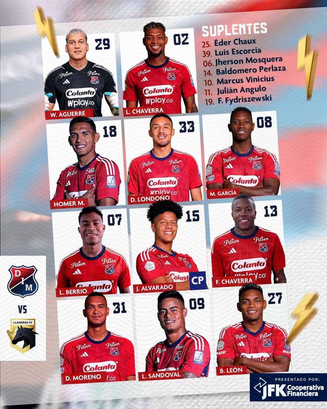 Así mismo, serán titulares Léider Berrío, Jaime Alvarado, Francisco Chaverra, Diego Moreno, Luis Sandoval y Brayan León.