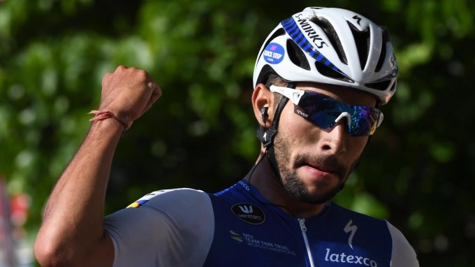 El ciclista colombiano Fernando Gaviria (Quick Step) sufre fuertes golpes en el hombro, rodilla y muñeca izquierdos a consecuencia de la caída a 50 kilómetros de la meta de la cuarta etapa de la Vuelta a San Juan, con meta en Valle Fértil-Villa San Agustín.