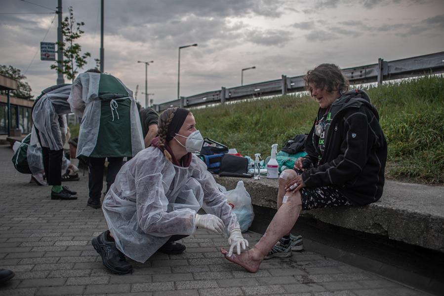 “La situación de pandemia ha traído cambios drásticos en nuestra organización porque hemos tenido que reorganizar las horas en las que atendemos a los pacientes”, explica a Efe sobre el terreno David Varys, estudiante de sexto año de Medicina y líder de la organización “Medici na ulici” (Médicos en la calle).