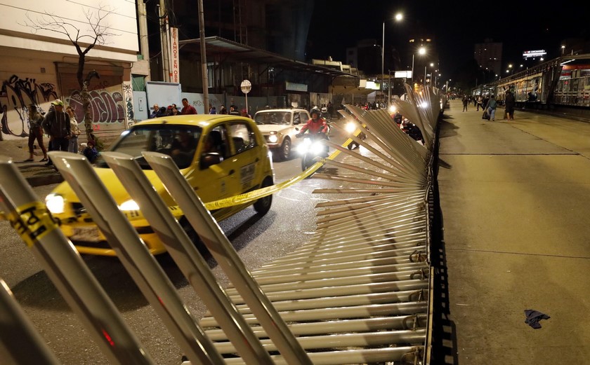 Un grupo de personas también echó abajo las barreras metálicas instaladas al frente de las estaciones de Transmilenio, que fueron puestas para evitar que se ingrese al sistema sin pagar el pasaje.