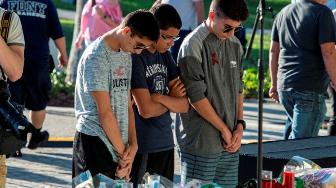 Estudiantes, familiares y miembros de la comunidad en Pine Trails Park, Parkland, Florida (EE. UU.). EFE