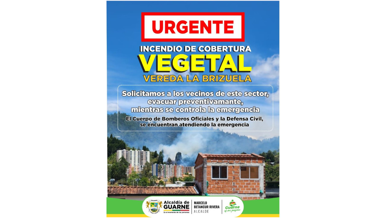 Al mediodía de este miércoles funcionarios de la oficina de gestión del riesgo solicitaron la evacuación de las viviendas de la urbanización La Brizuela y las zonas aledañas al sector La Fontana, en el municipio de Guarne, Antioquia.
