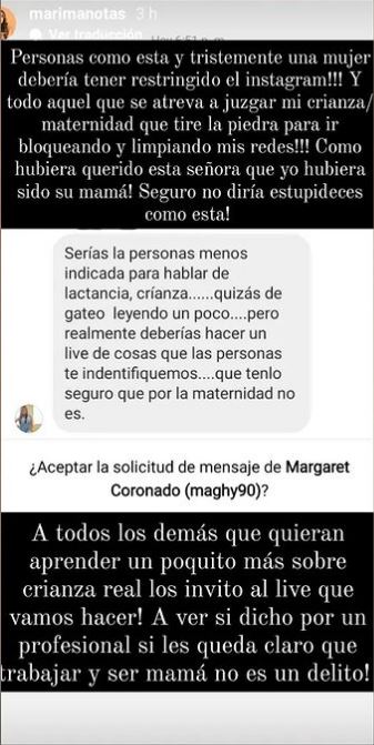 Esa situación ha cargado mucho a los internautas, de hecho, una joven se despachó en contra de Mari Manotas, pero ella no se le quedó callada.